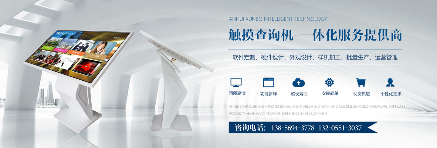 迅博智能 位于中國(guó)科教城---合肥市,和經(jīng)濟(jì)開發(fā)區(qū)與高新區(qū)毗鄰,地址合肥市肥西縣湯口路與皋城路交口人民萬(wàn)福產(chǎn)業(yè)園一期12棟東側(cè),是一家IT領(lǐng)域的高新技術(shù)企業(yè),全心全意服務(wù)于信息化建設(shè),做專業(yè)的信息化提供商,全力打造信息時(shí)代新模式。 迅博智能 主要從事觸摸屏、觸摸顯示器、OLED柔性觸摸屏、觸摸查詢一體機(jī)系列產(chǎn)品及觸摸顯示互動(dòng)體驗(yàn)軟硬件產(chǎn)品;智能排隊(duì)叫號(hào)、網(wǎng)上預(yù)約排隊(duì)叫號(hào)、安康碼皖事通取號(hào)系統(tǒng);曲面屏、OLED 屏幕、柔性屏、LCD液晶大屏拼接系統(tǒng);落地式、壁掛式單機(jī)版網(wǎng)絡(luò)版室內(nèi)外廣告機(jī)及數(shù)字標(biāo)牌廣告信息發(fā)布系統(tǒng);室內(nèi)外LED電子格柵透明屏、單雙色、全彩電子大屏;各類辦事營(yíng)業(yè)廳:公積金...
